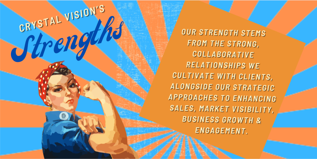 Crystal Vision Marketing is a full service, woman owned, business strategy and marketing firm. We form close partnerships with our clients to help them identify strategies for branding, growth and engagement and we build specific initiatives and integrated programs to help them achieve success.